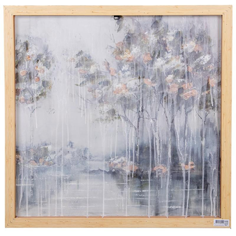 Set de 2 cuadros lienzo con un paisaje de rio y marco de madera natural en blanco, verde y gris. Medidas: 80x80x3.5 cm