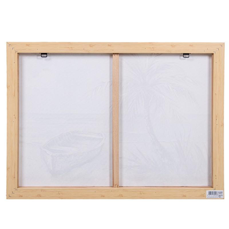Set de 2 cuadros lienzo de una marina con marco de madera natural en blanco, azul y verde. Medidas: 70x50x3.5 cm