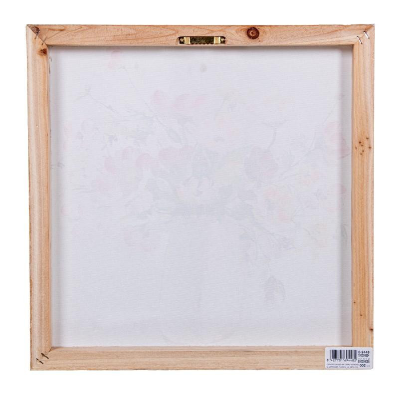 Set de 2 cuadros lienzo natural con jarrones y flores en blanco, amarillo y rosa 40x40x3 cm