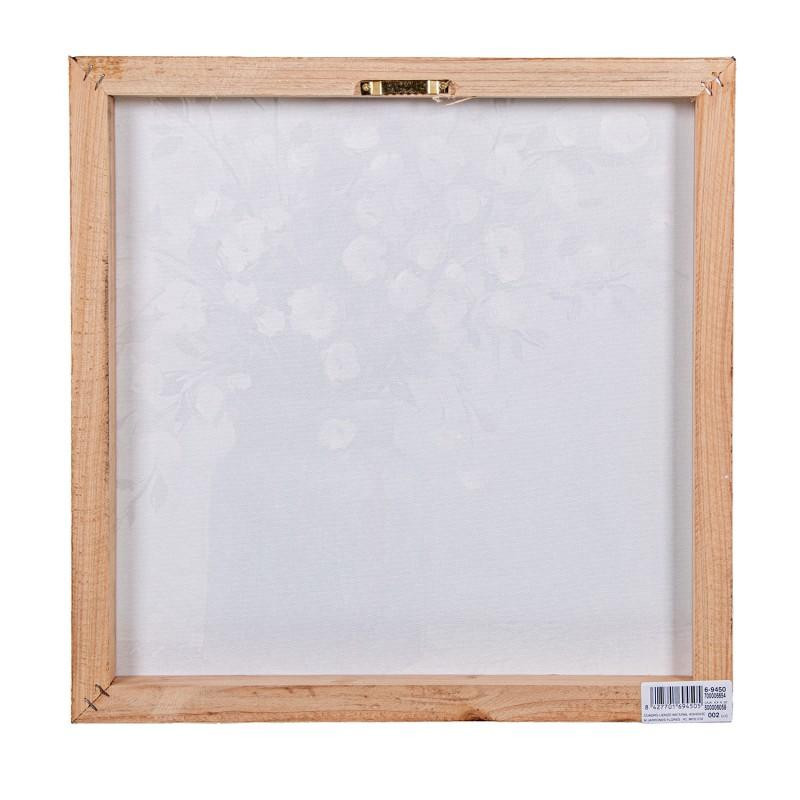 Set de 2 cuadros lienzo natural con jarrones y flores en blanco, verde y azul. Medidas: 40x40x3 cm