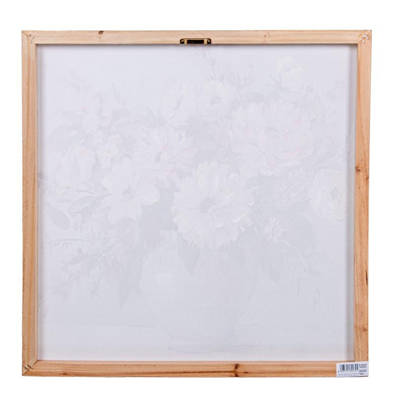 Set de 2 cuadros lienzo natural con jarrones y flores en blanco, verde y rosa. Medidas: 60x60x3 cm