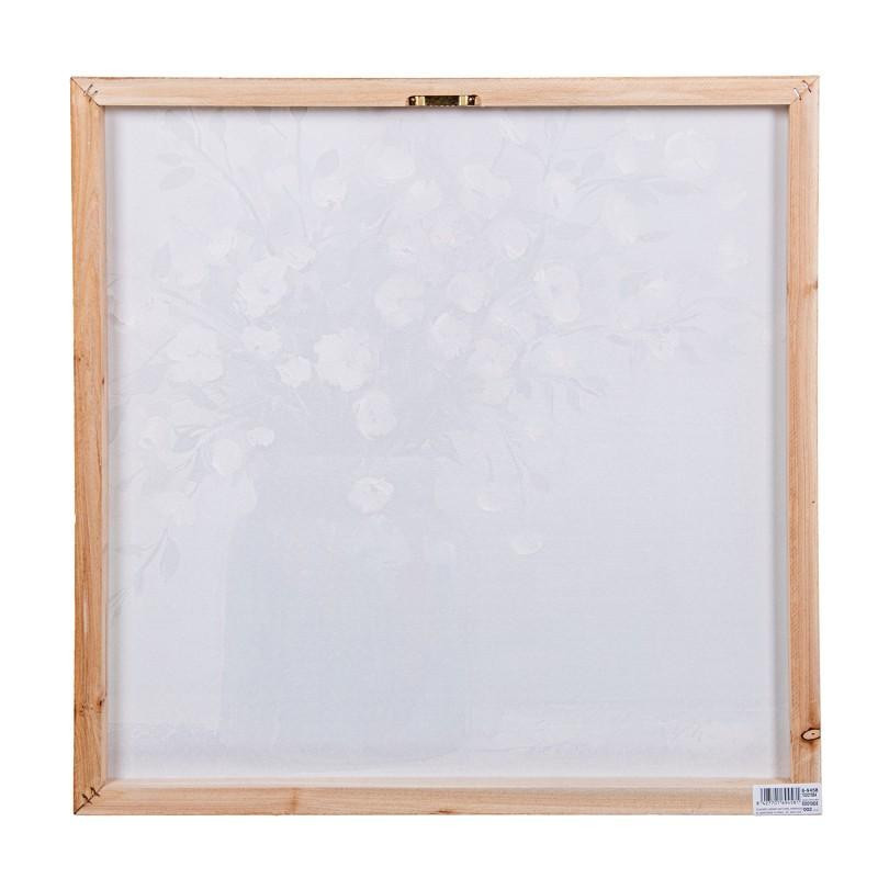 Set de 2 cuadros lienzo natural con jarrones y flores en blanco, verde y azul. Medidas: 60x60x3 cm