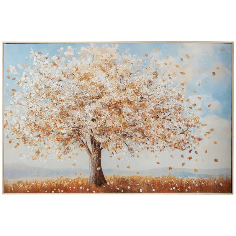 Cuadro lienzo con arbol en marron, azul y blanco 80x120x3.7 cm
