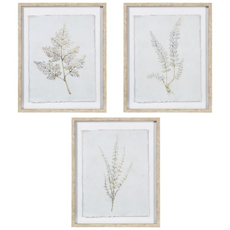 Set de 3 cuadros lienzo con flores en gris y verde 40x50x3 cm