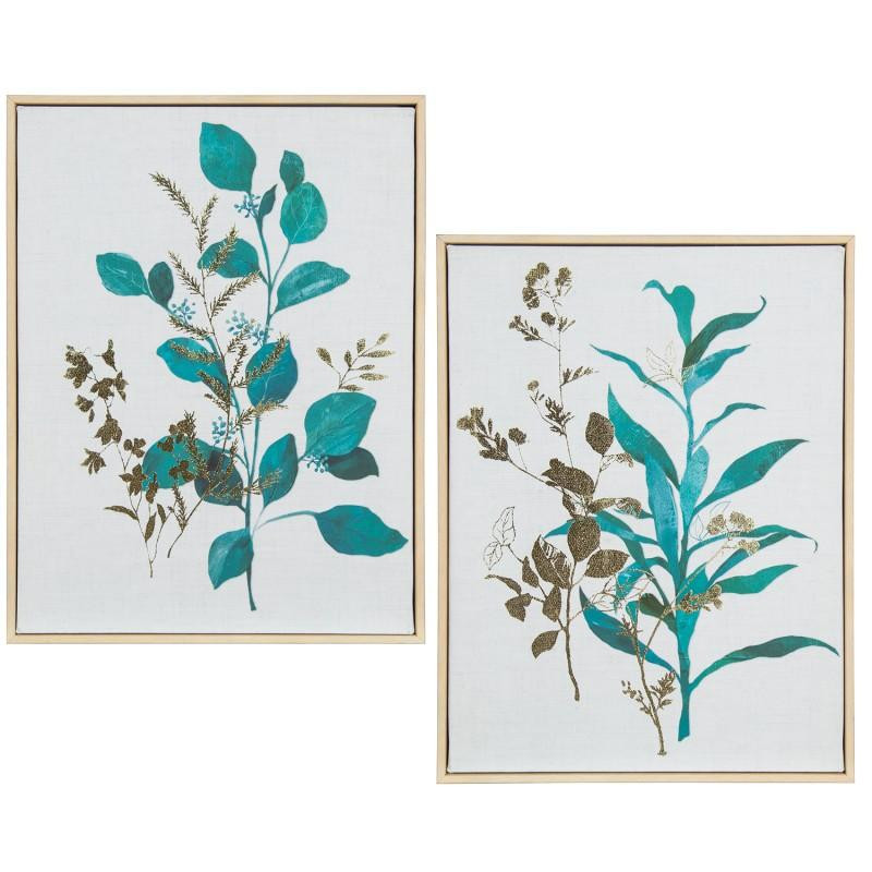 Set de 2cuadros lienzo con plantas en azul y verde 30x40x3 cm