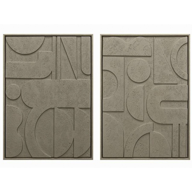 Set de 2 cuadros estilo moderno abstracto 3D color blanco arena 50x3x70 cm
