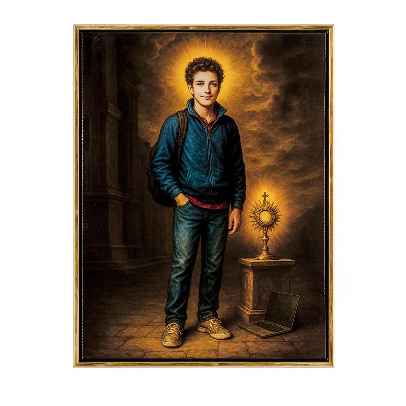 Cuadro San Carlo Acutis con marco 32x3x42 cm