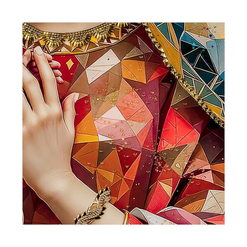 Set 2 cuadros Cuadro Virgen con el niño estilo mosaico geometrico con marco dorado 82x2x122 cm