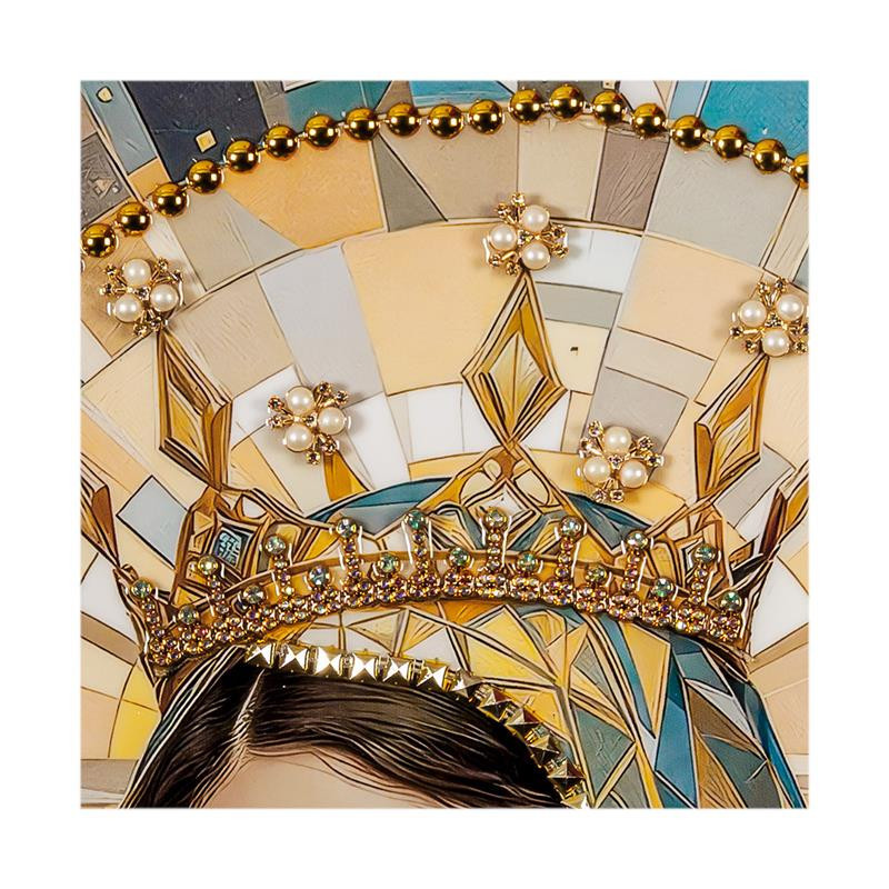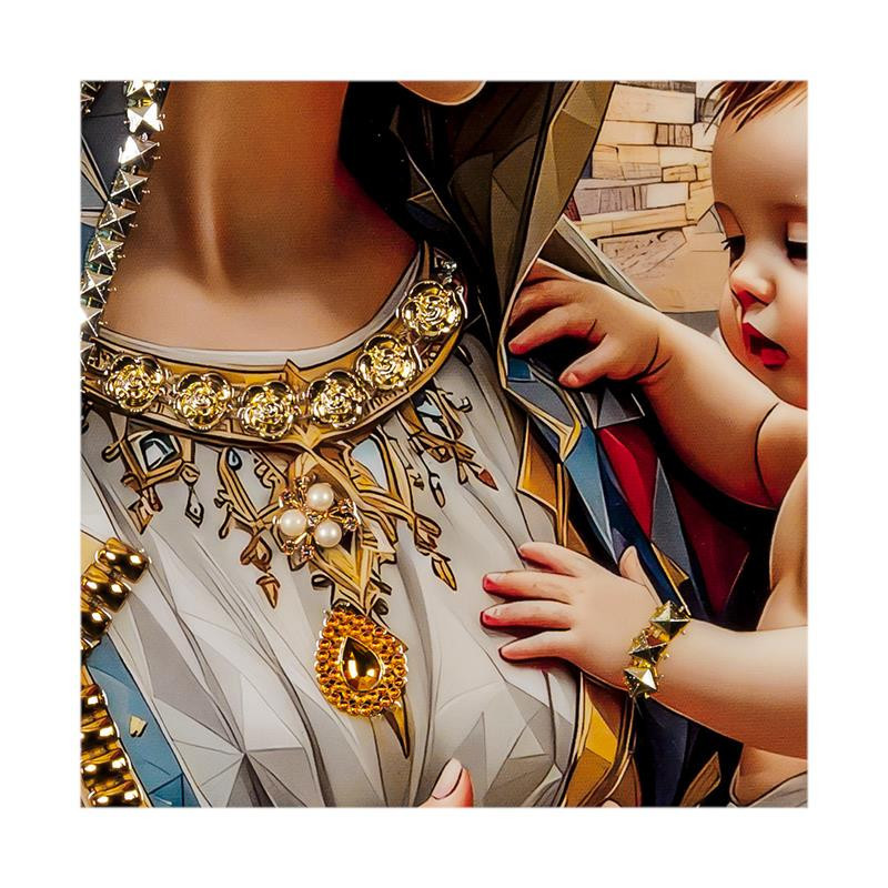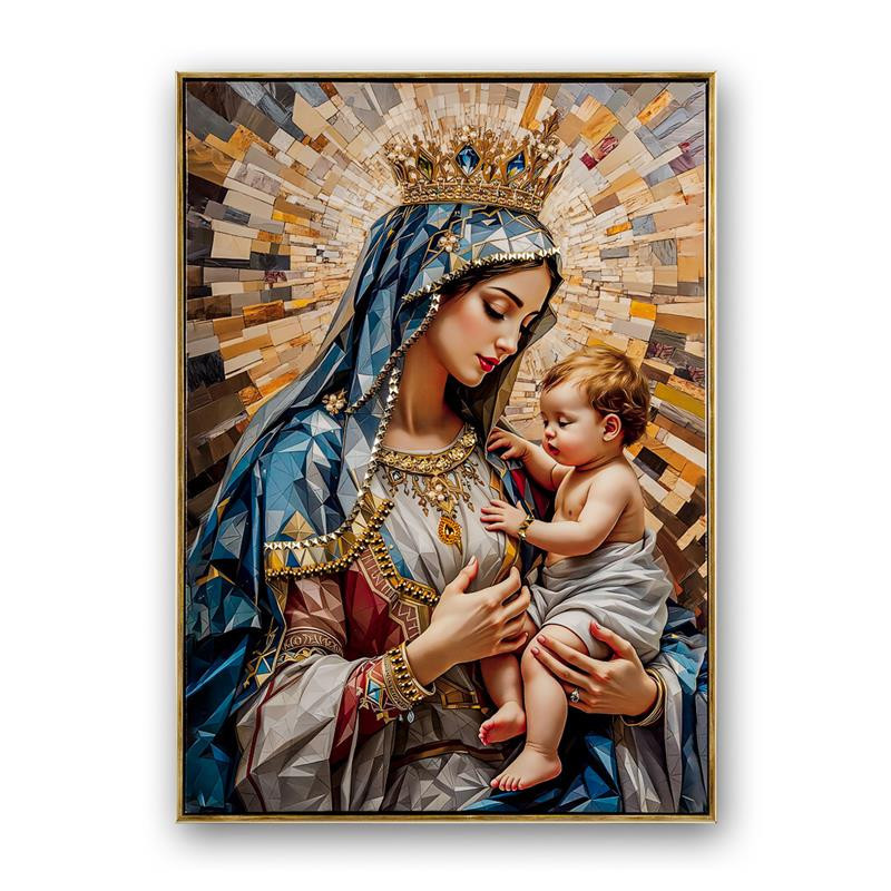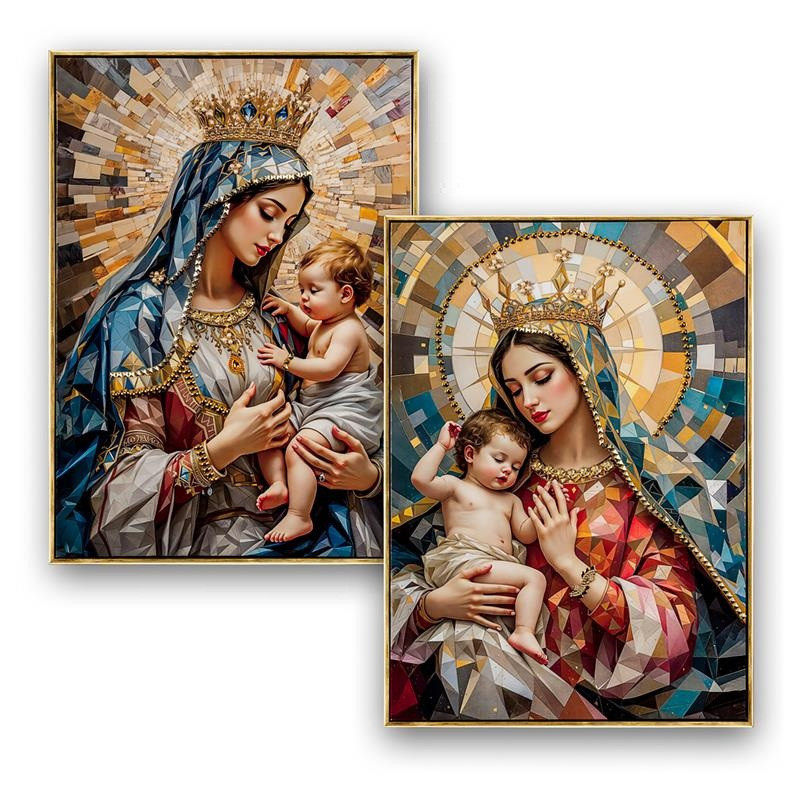 Set 2 cuadros Cuadro Virgen con el niño estilo mosaico geometrico con marco dorado 52x2x72 cm