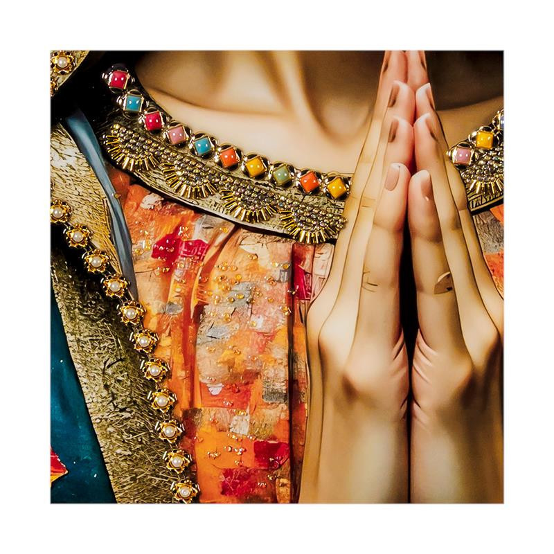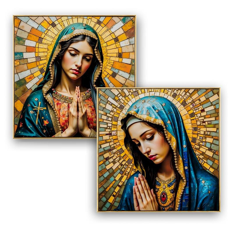 Set 2 cuadros Cuadro Virgen rezando brillo con marco dorado 80x2x82 cm