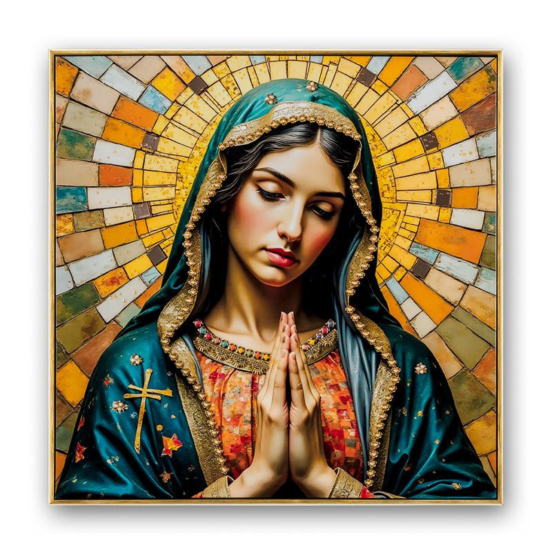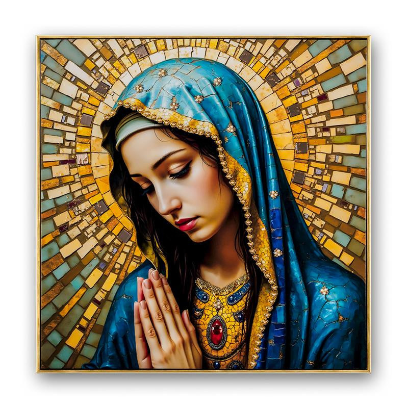 Set 2 cuadros Cuadro Virgen rezando brillo con marco dorado. Medidas: 2x82x80 cm
