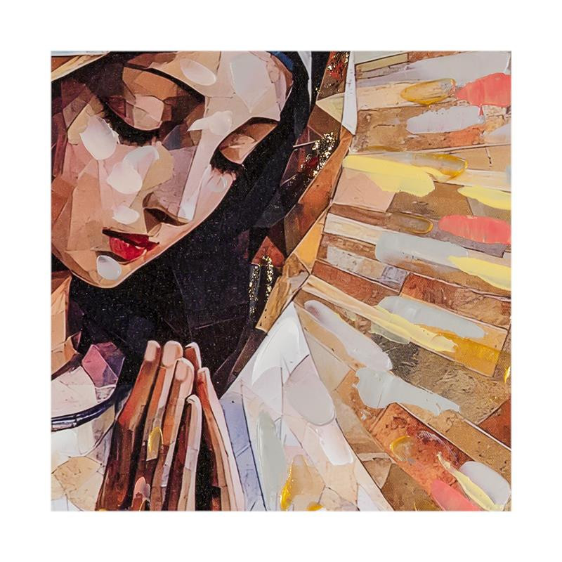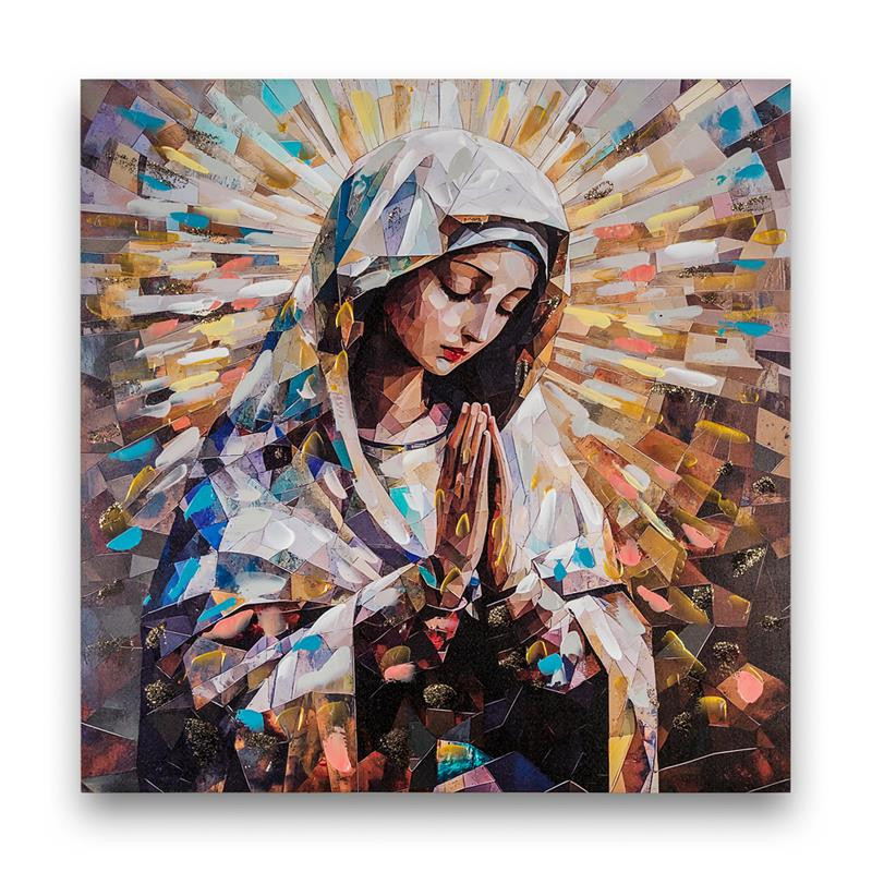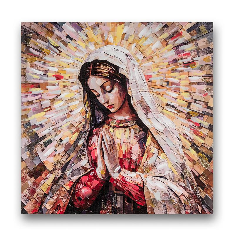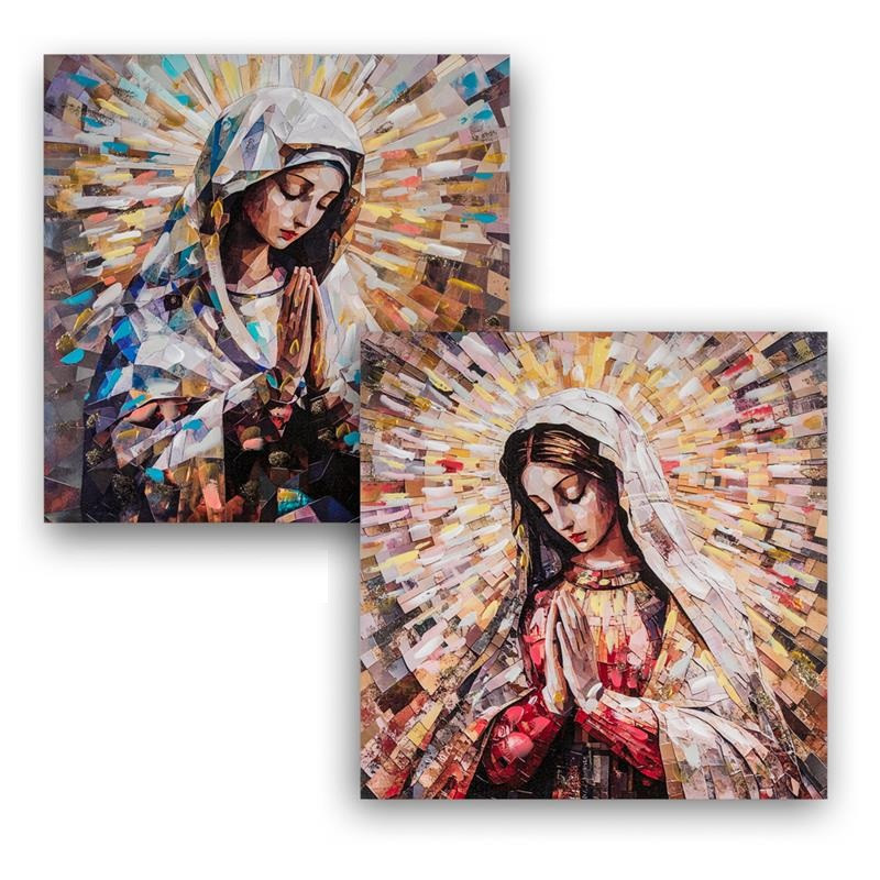 Set 2 cuadros Cuadro Virgen rezando estilo mosaico geometrico con marco dorado. Medidas: 2x82x80 cm