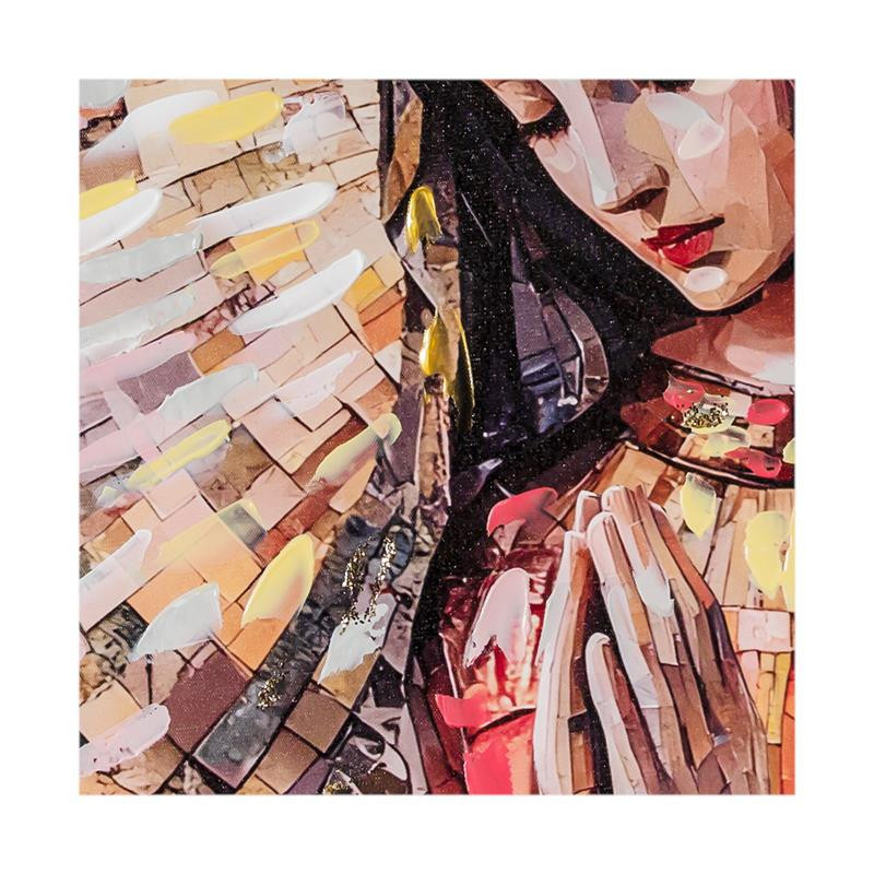 Set 2 cuadros Cuadro Virgen rezando estilo mosaico geometrico con marco dorado 80x2x82 cm
