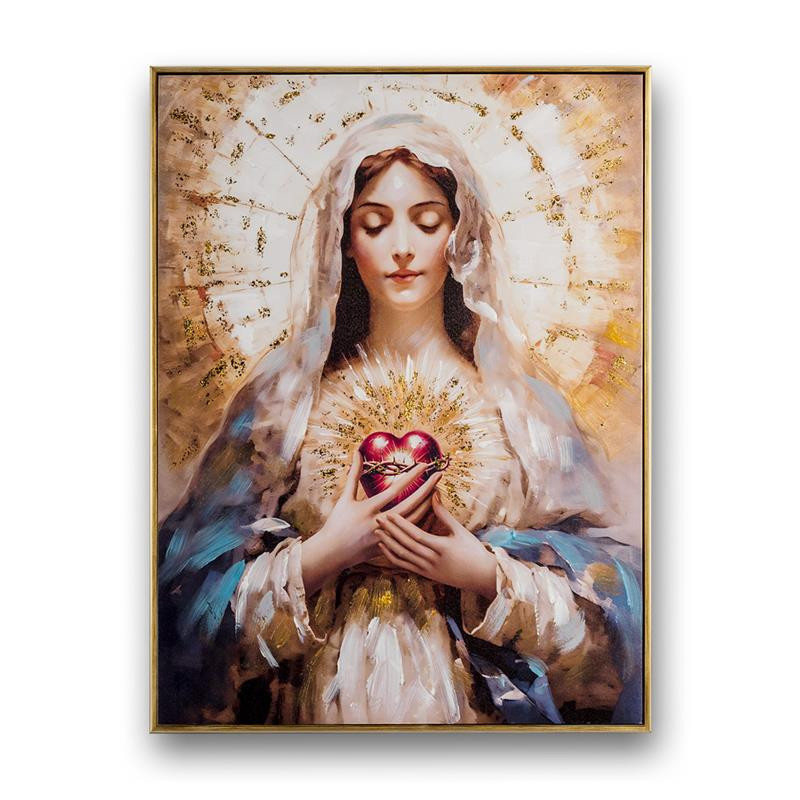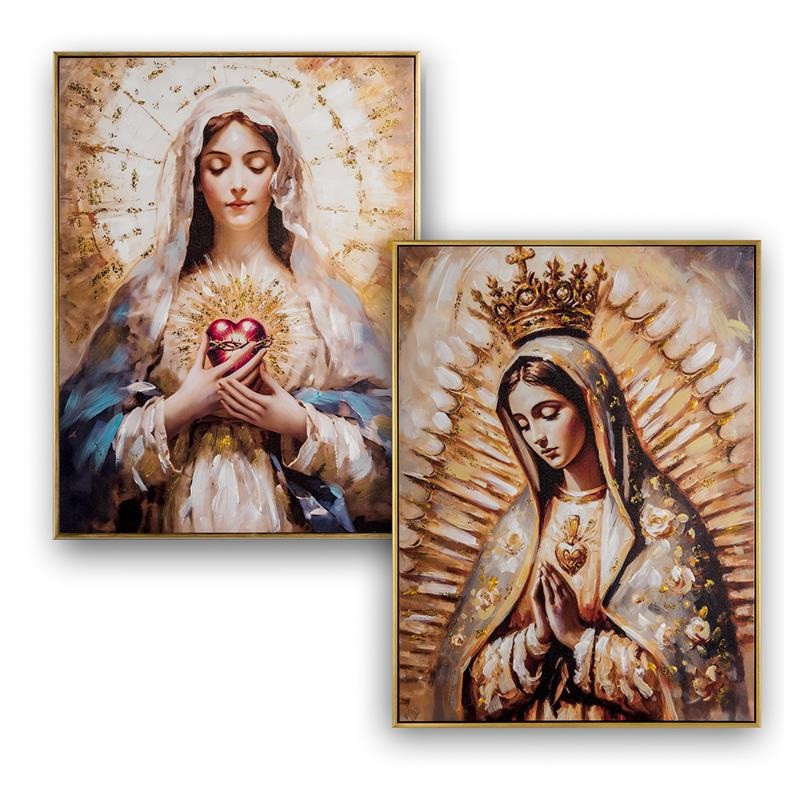 Set 2 cuadros Sagrado Corazon de Maria con marco dorado 62x2x82 cm
