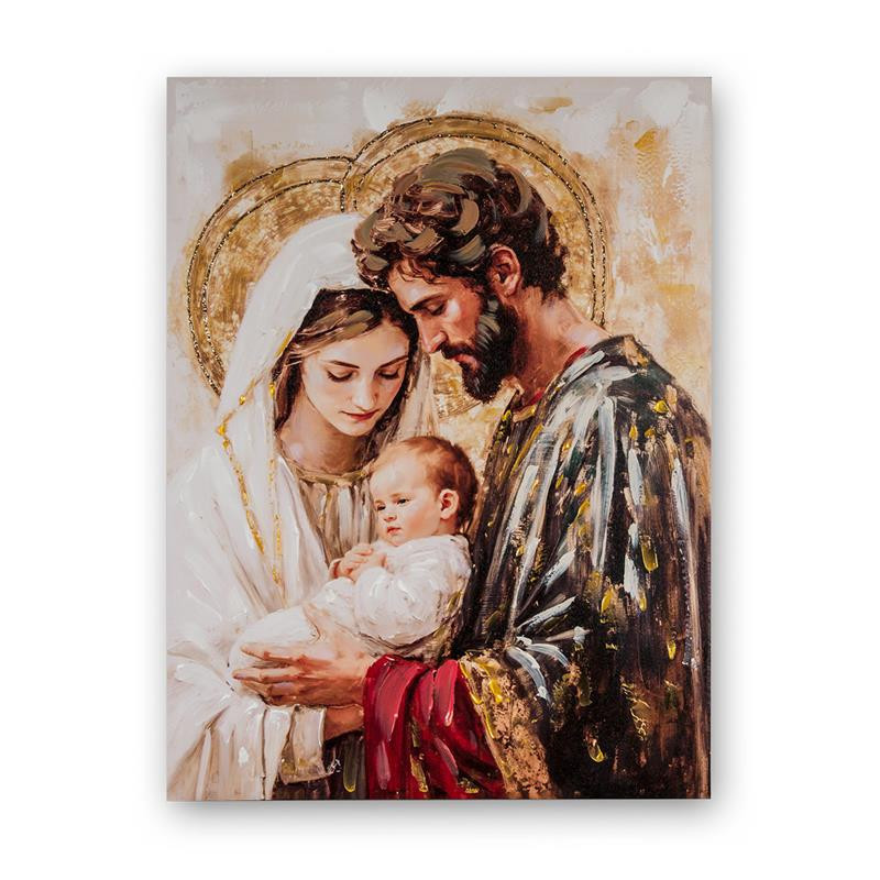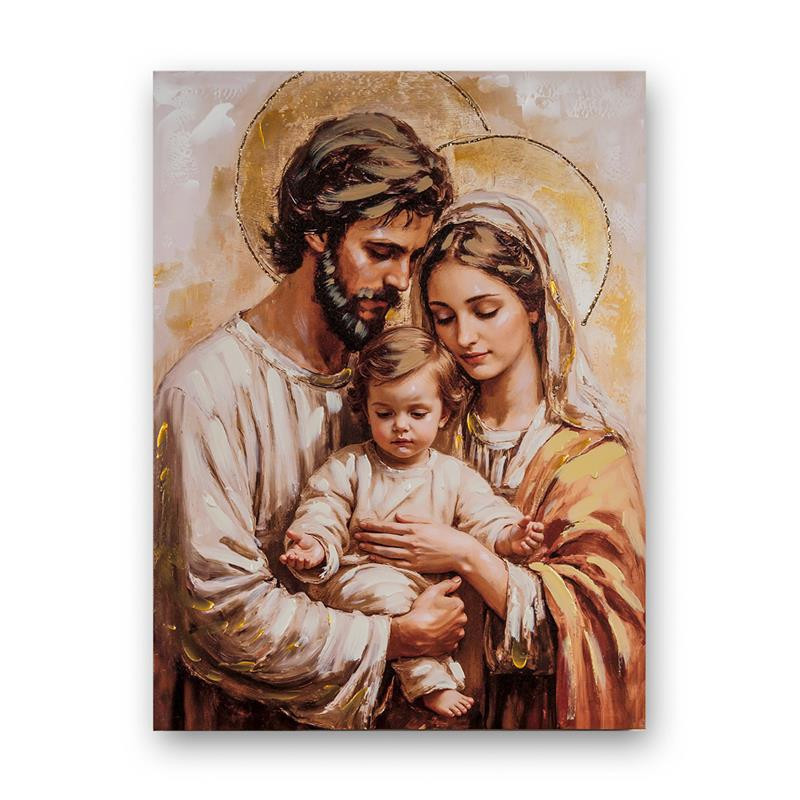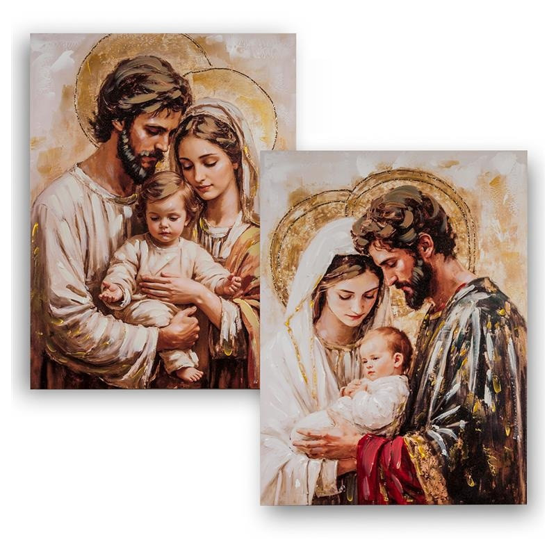 Set 2 cuadros de la Sagrada Familia estilo realista con marco dorado 62x2x82 cm