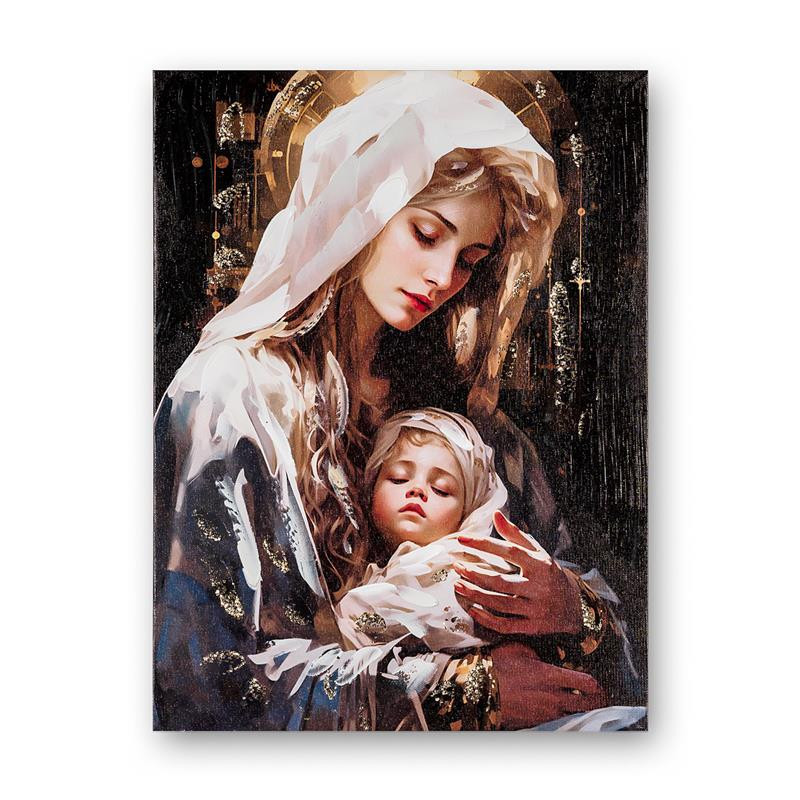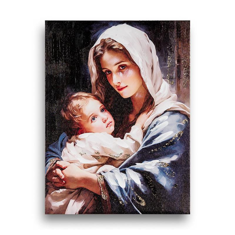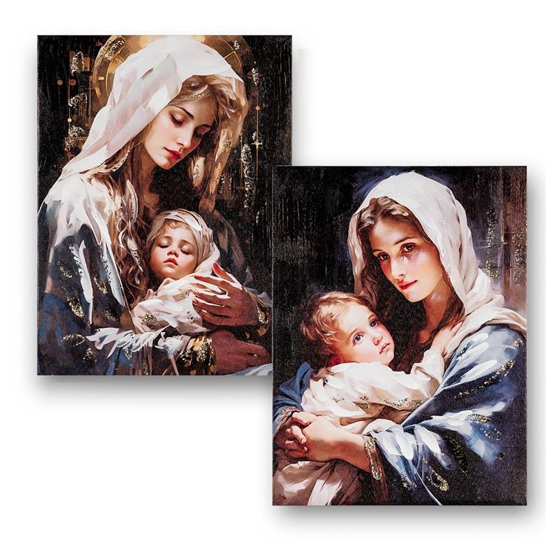 Set 2 cuadros de la Virgen con el niño estilo realista con marco dorado 32x2x42 cm