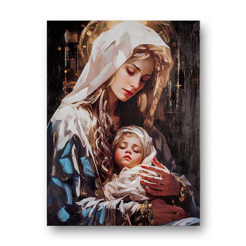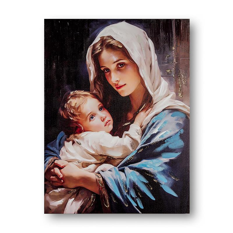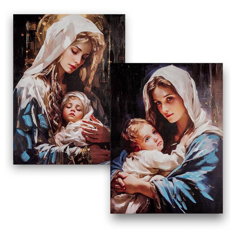 Set 2 cuadros de la Virgen con el niño estilo realista con marco dorado 62x2x82 cm