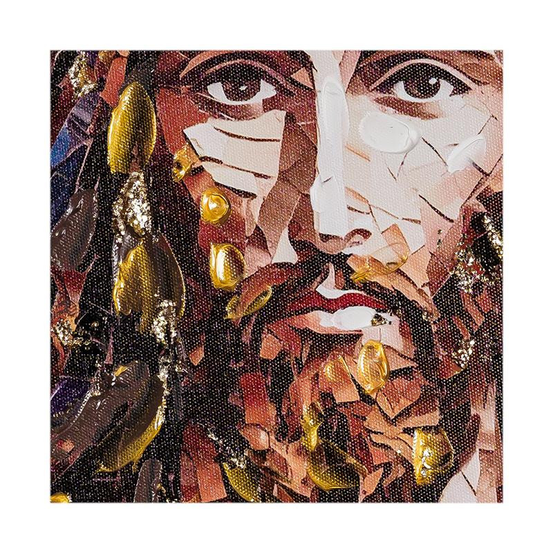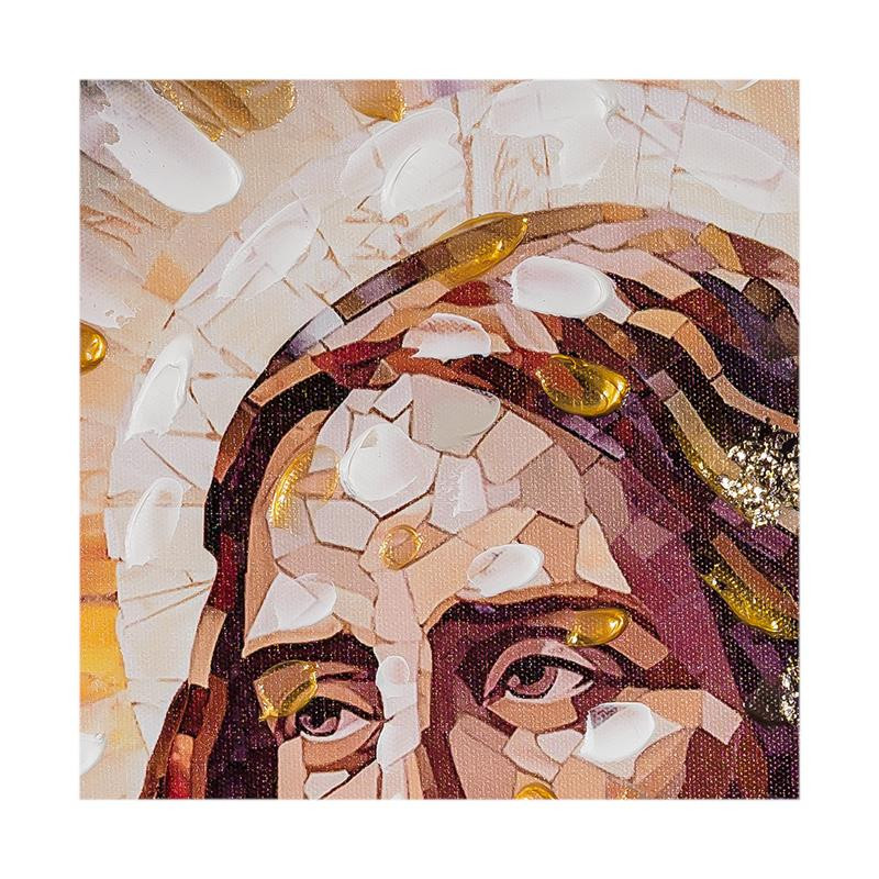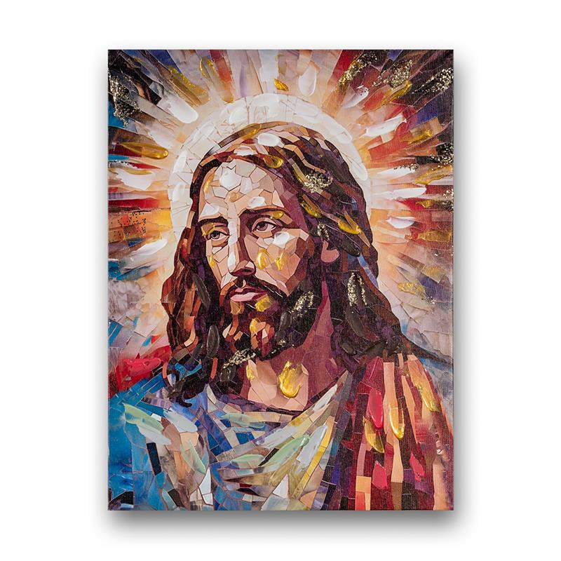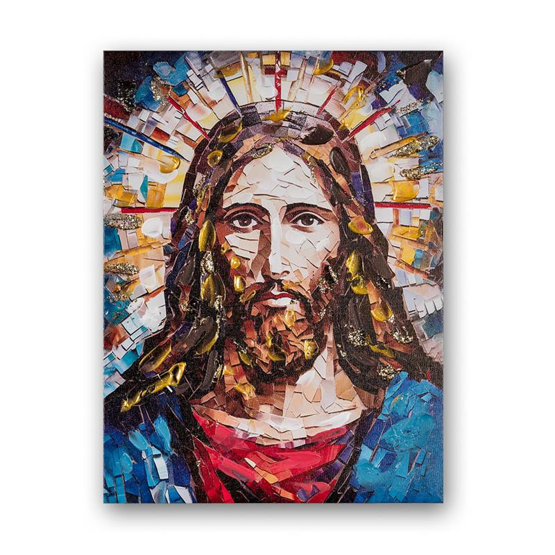 Set 2 cuadros Sagrado Corazon de Jesus estilo mosaico geometrico con marco dorado. Medidas: 2x42x32 cm