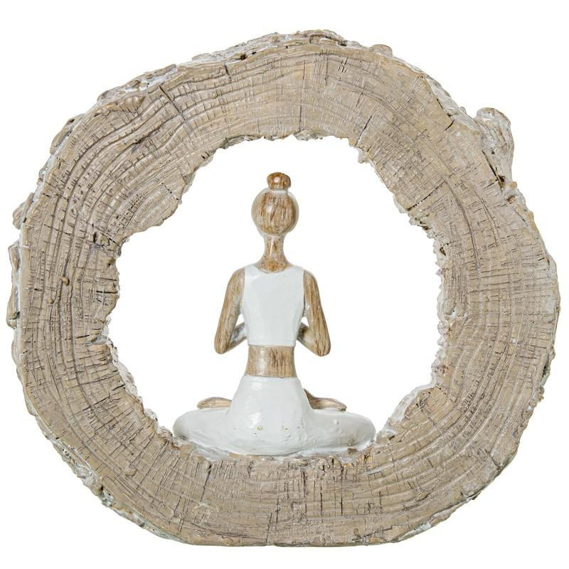 Figura mujer meditando en un circulo de resina blanco y natural 18x20x5 cm