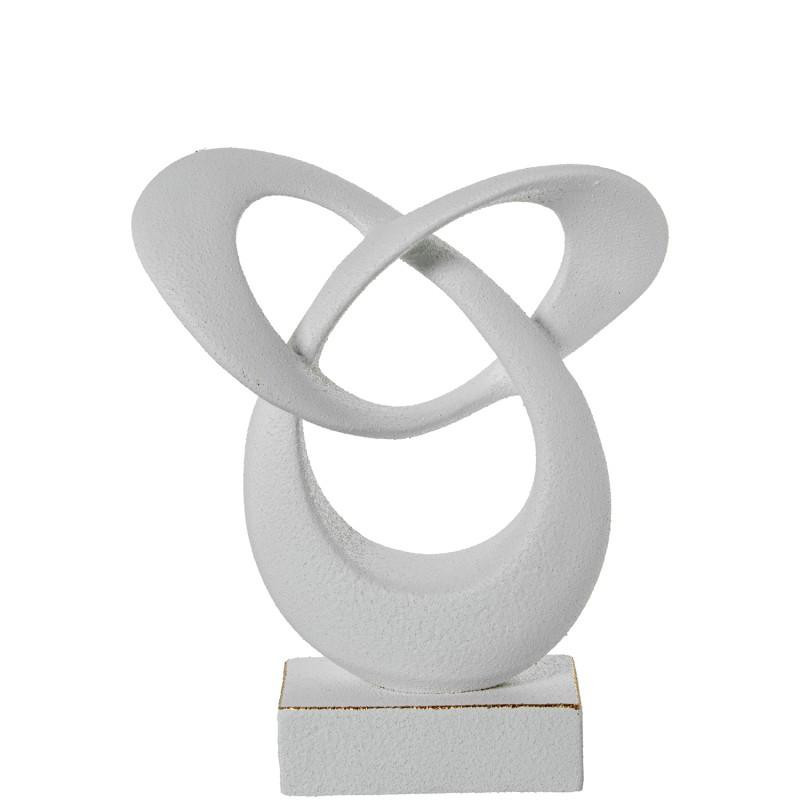 Figura de sobremesa abstracta de ceramica en blanco y dorado acabado arena 33x28x16 cm