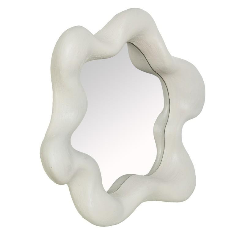 Espejo de pared con forma irregular de resina en blanco 38x38x5.5 cm