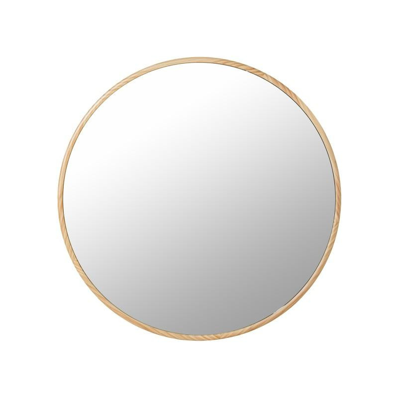 Espejo de pared redondo con moldura de madera en natural. Medidas: 80x80x3.5 cm