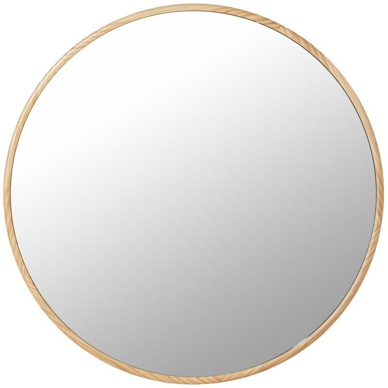 Espejo de pared redondo con moldura de madera en natural. Medidas: 120x120x3.5 cm