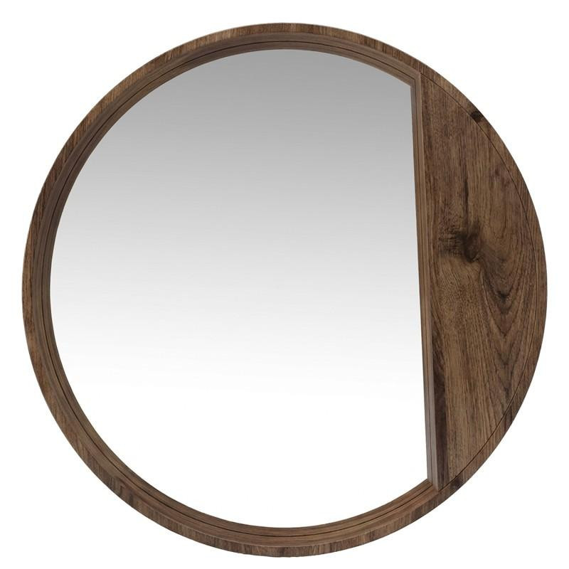 Espejo de pared redondo con marco de madera en natural 80x80x3 cm