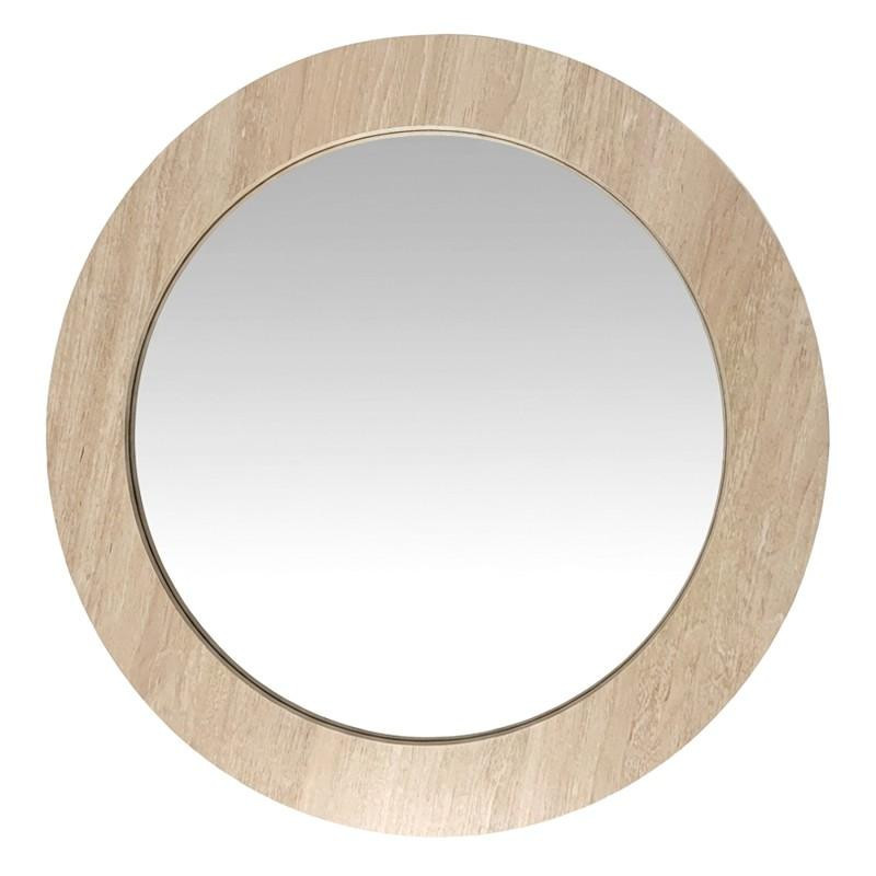 Espejo de pared redondo con marco de madera en natural 80x80x2 cm