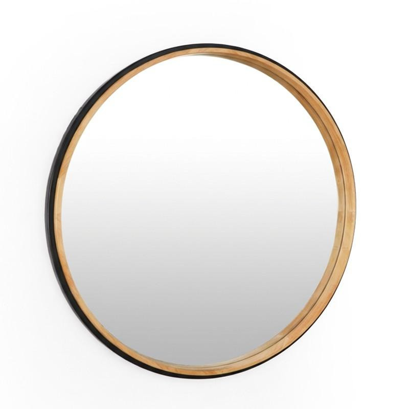 Espejo de pared redondo de madera+dmen natural y nogal 80x80x3.5 cm
