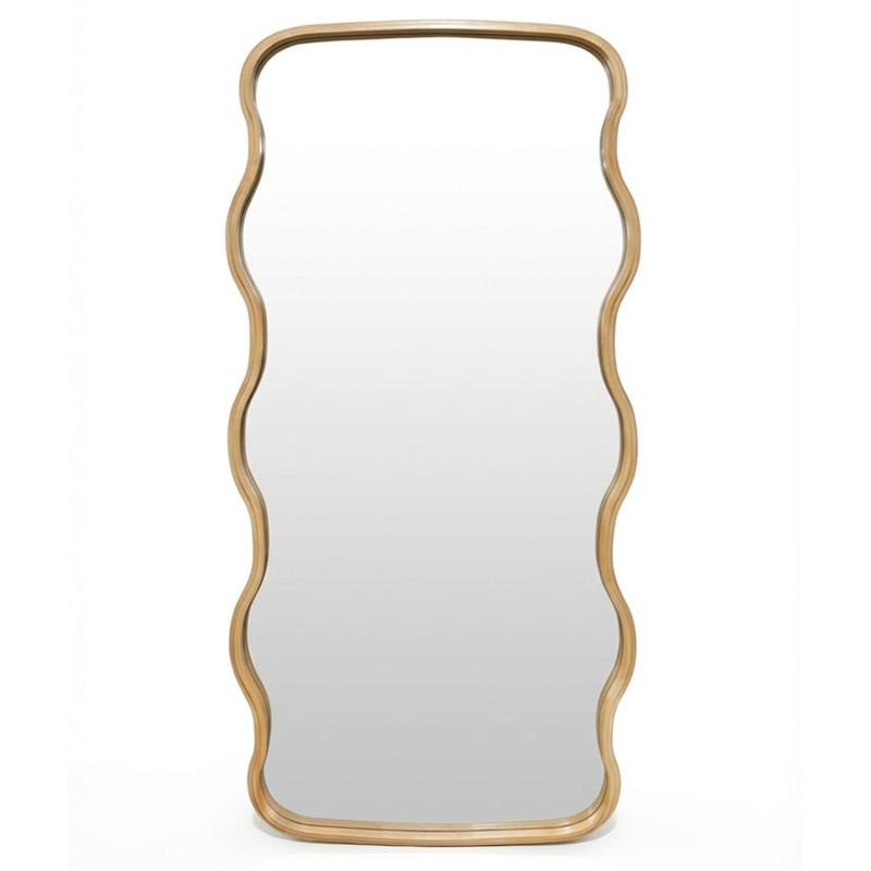 Espejo de pared con forma de madera +dm en natural y nogal. Medidas: 76x3.5x170cm