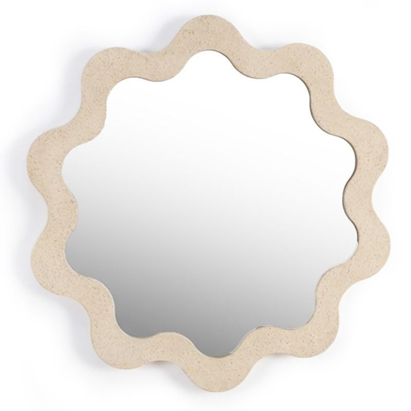 Espejo de pared con forma de poliresina + dm en crema efecto piedra 90x86x2.5 cm