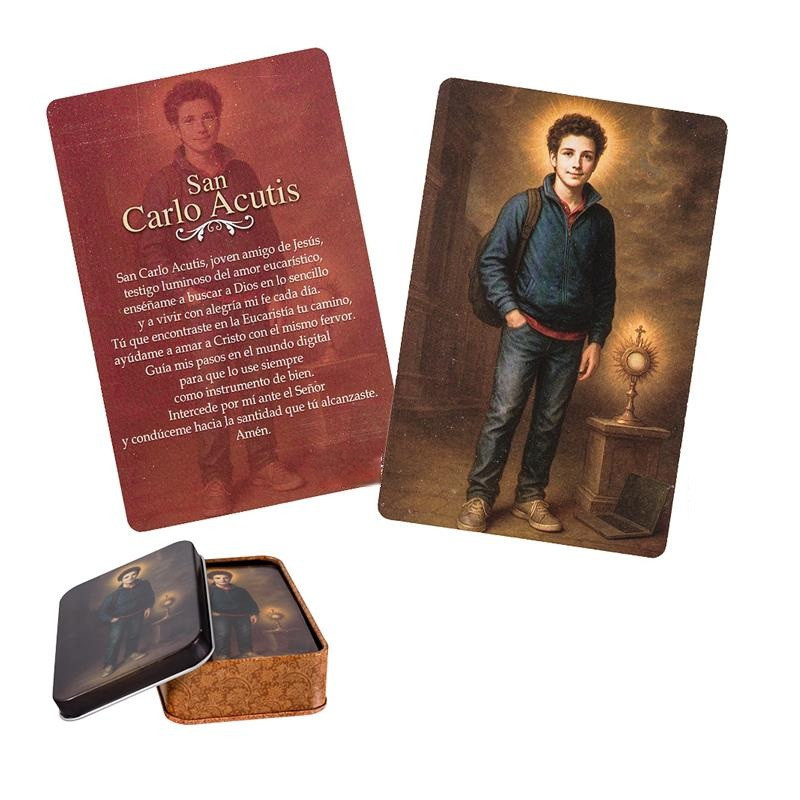 Estampitas San Carlo Acutis 60 unidades. Medidas: 1x9x6 cm
