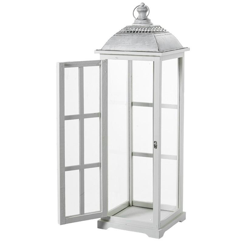Set de 3 faroles de madera y parte superior de metal en blanco y gris 102x33x33 cm