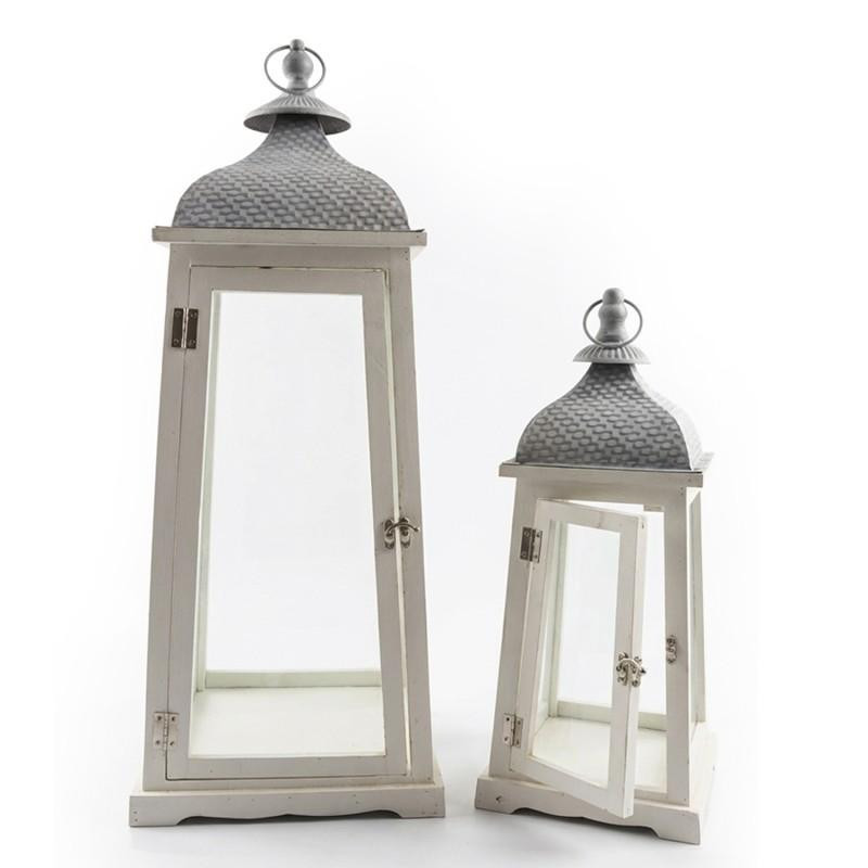 Set de 2 faroles de madera y parte superior de metal en blanco 73x24x24 cm