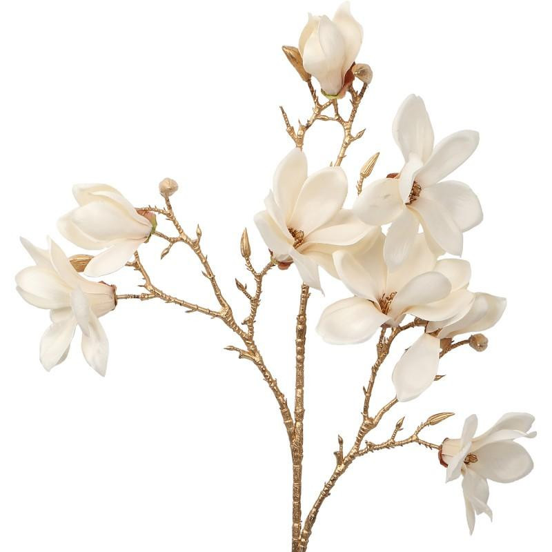 Set 6 ramas color dorado con flores artificiales de pu-foam crema 87x40x40 cm