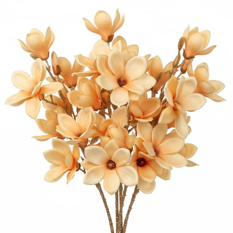 Set 6 ramas color dorado con flores artificiales de pu-foam amarillo. Medidas: 40x40x87 cm