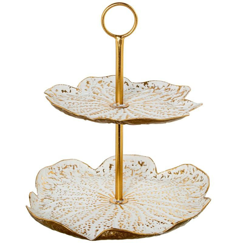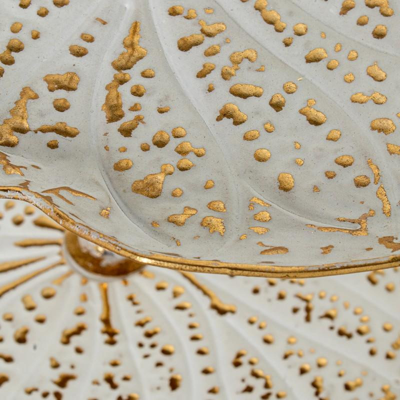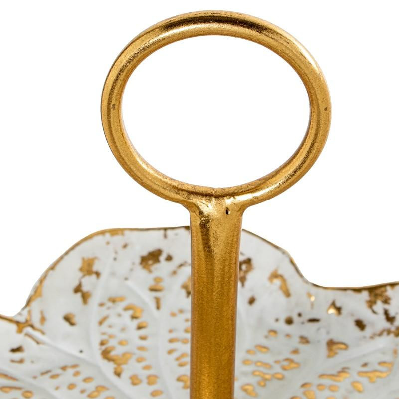Frutero de 2 pisos con formas irregulares de metal blanco y dorado 47.5x45x42.5 cm