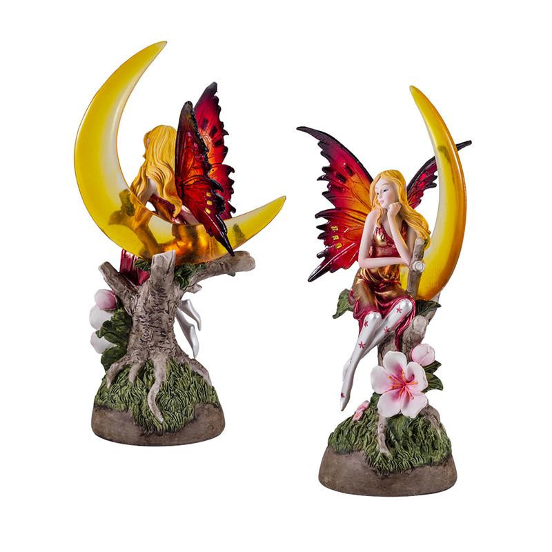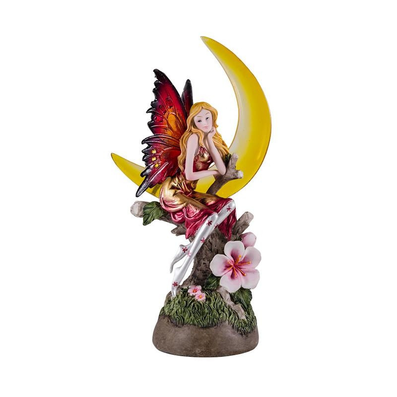 Figura hada con flores sobre una luna de resina pintada a mano 22 cm