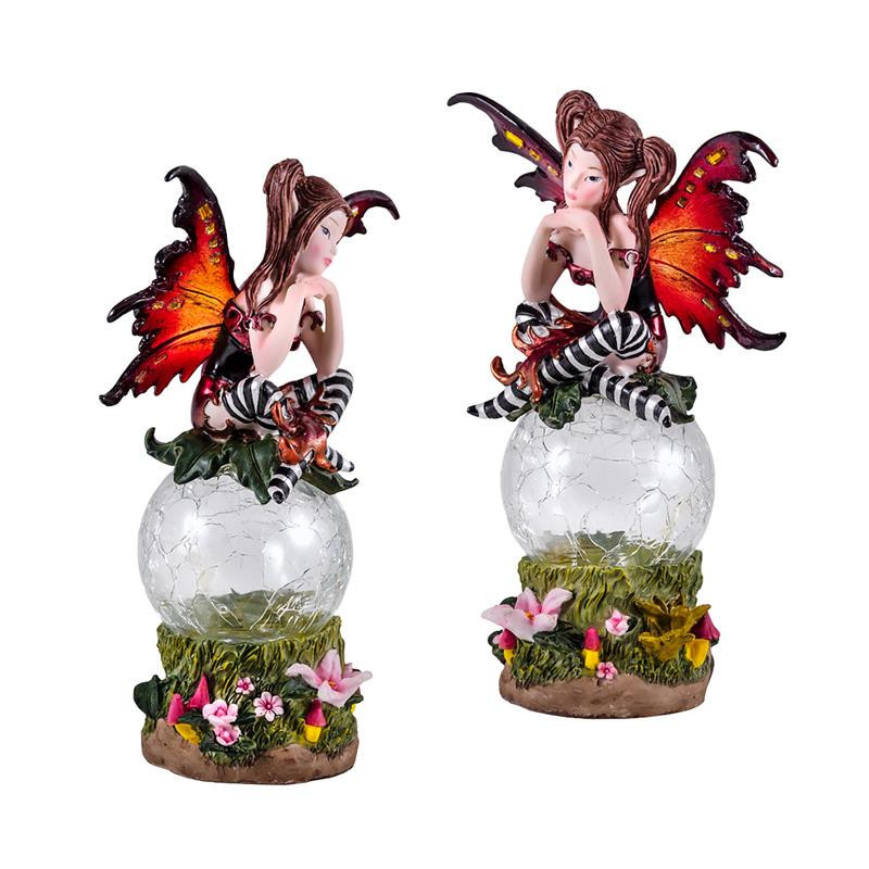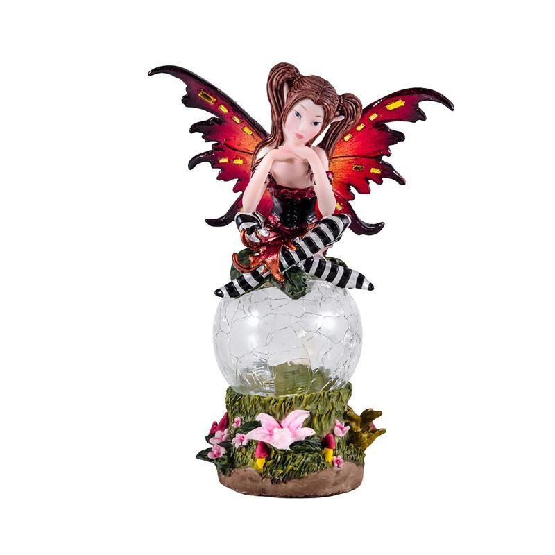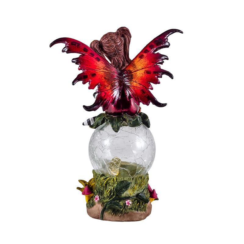 Figura hada roja sobre bola de cristal de resina pintada a mano 16 cm