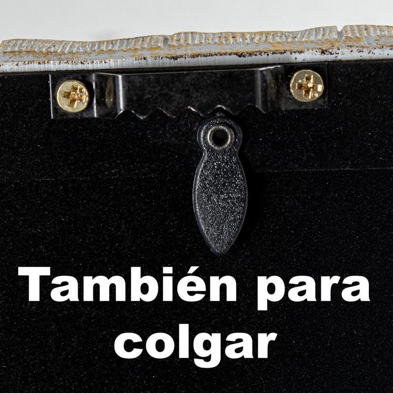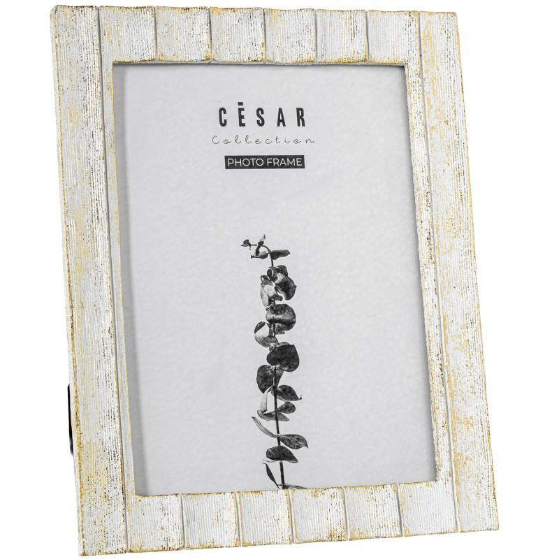 Portafotos decorado de resina para fotografia de 20x25cm en blanco y dorado 25x20x1.5 cm