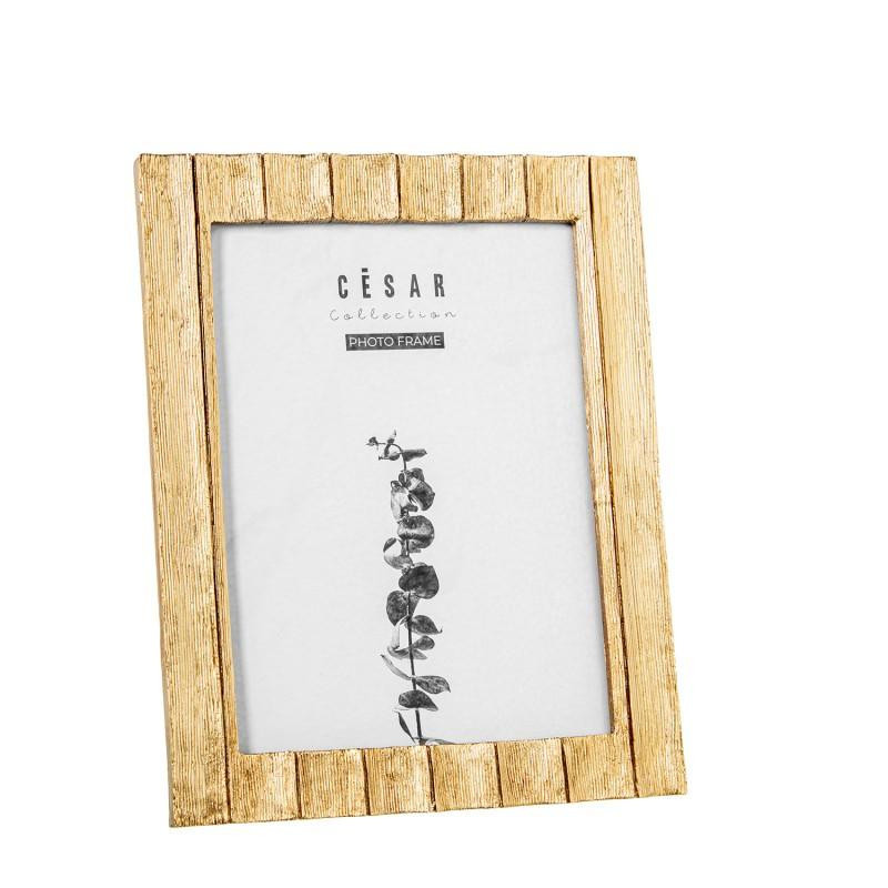 Portafotos decorado de resina para fotografia de 10x15cm en dorado. Medidas: 15x10x1,5cm