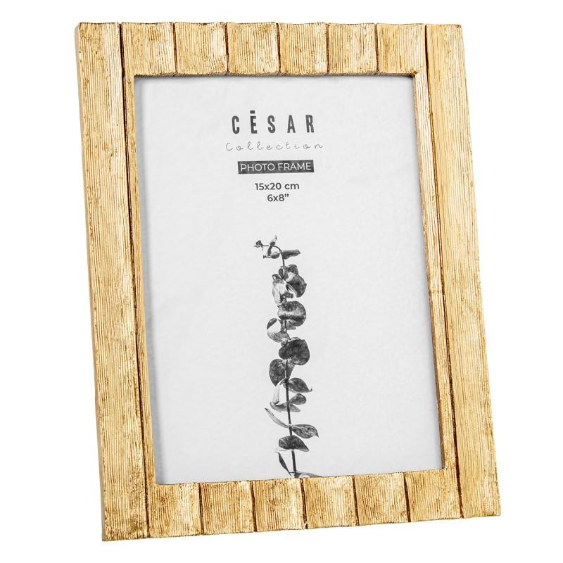 Portafotos decorado de resina para fotografia de 15x20cm en dorado. Medidas: 20x15x1,5cm