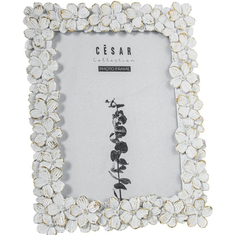 Portafotos decorado de resina para fotografias de 20x25cm en blanco y dorado 25x20x1.7 cm