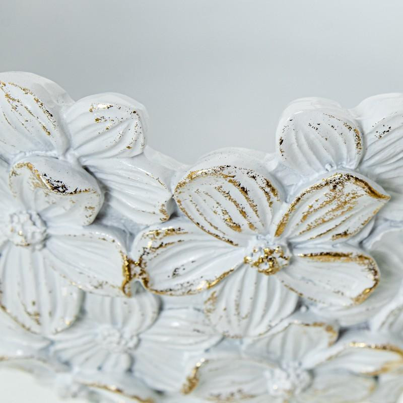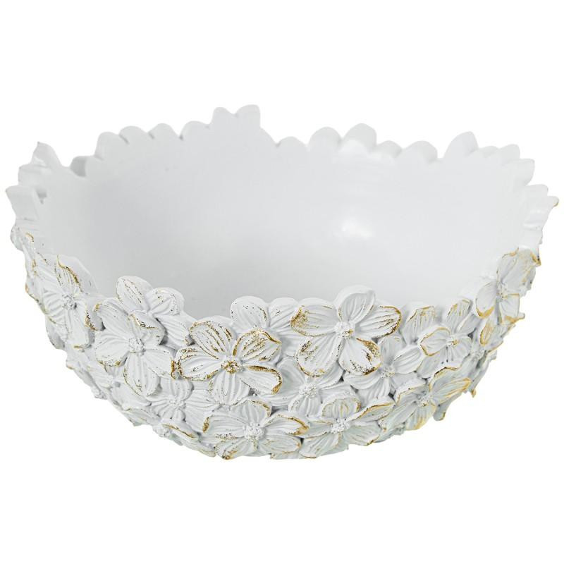 Centro de mesa redondo decorado de resina en blanco y dorado 8x19.5x19.5 cm