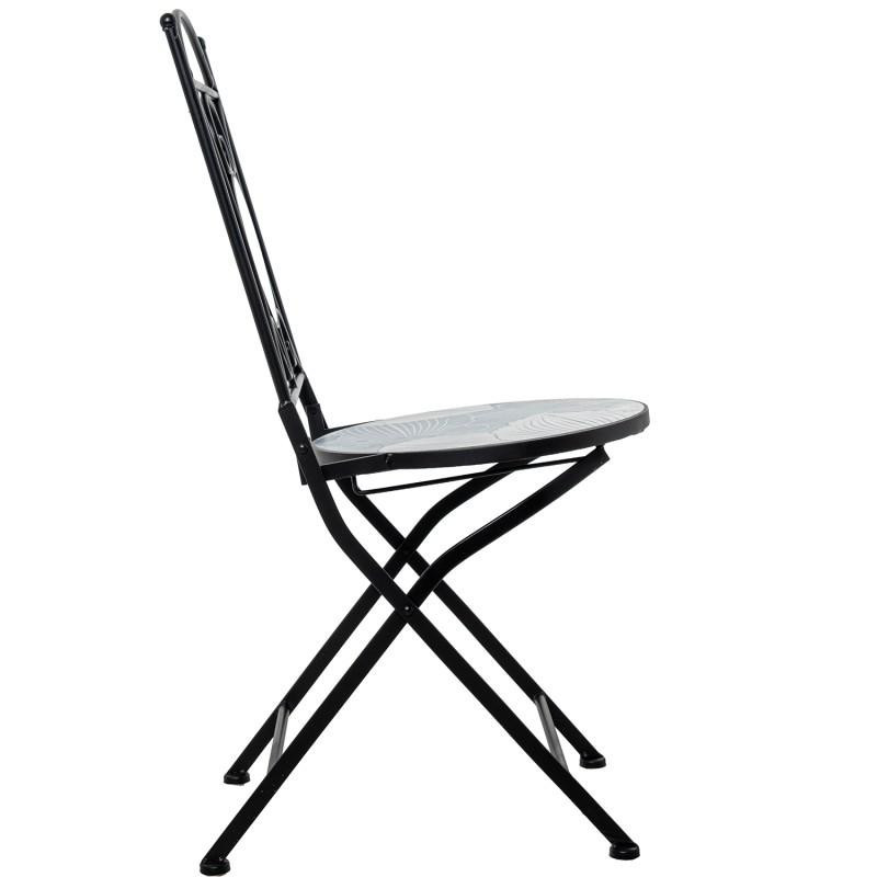 Set de mesa y 2 sillas de jardin de metal y piedra en negro, azul y blanco 72x60x60 cm