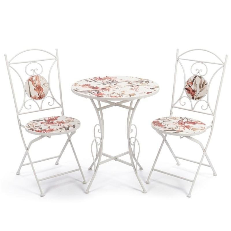 Set de mesa y 2 sillas de jardin de metal y piedra en blanco, crema y verde 72x60x60 cm