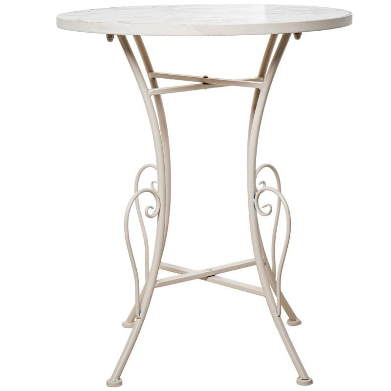 Set de mesa y 2 sillas de jardin de metal y piedra en blanco, crema y verde. Medidas: 60x60x72 y 38x38x92cm