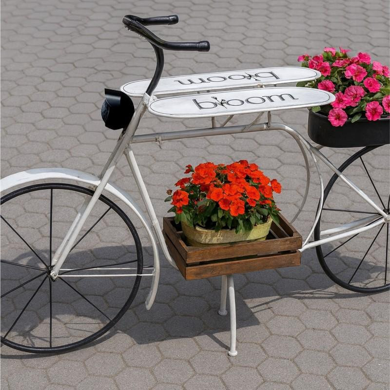Moto vintage jardinera con bandeja de madera en blanco, negro y natural 103x188x57 cm