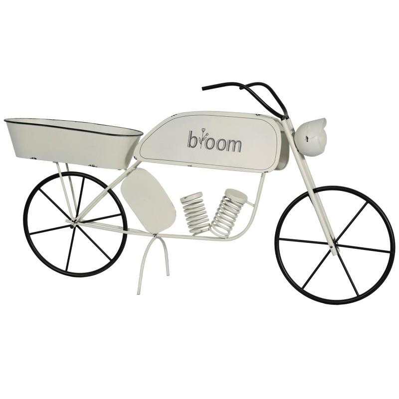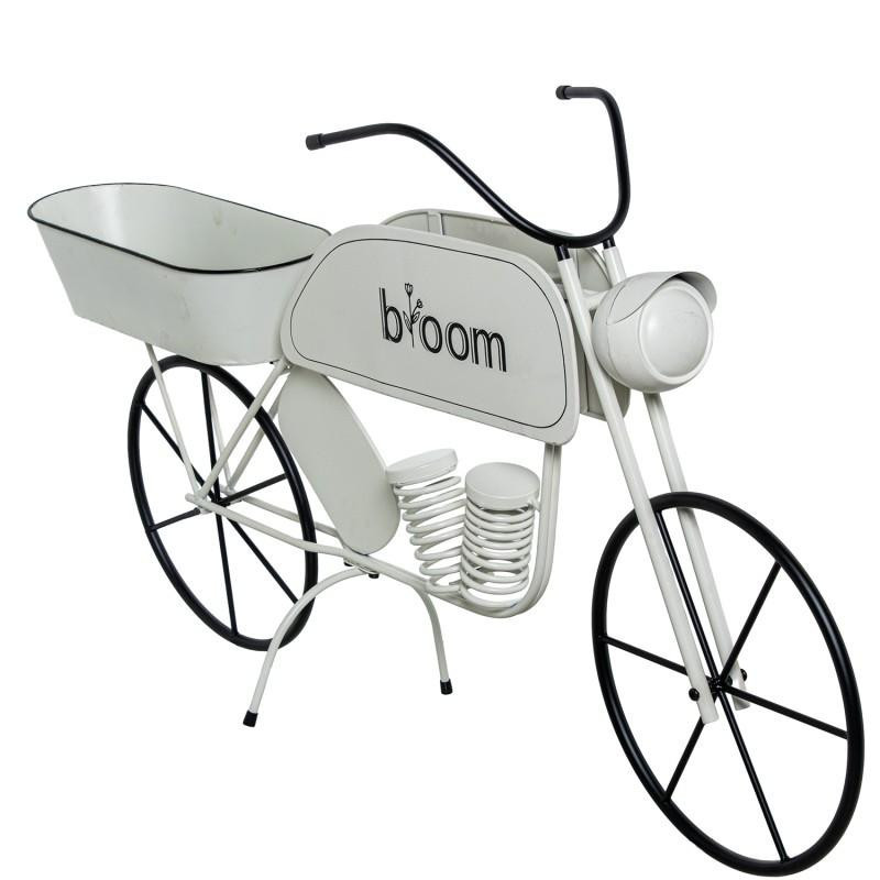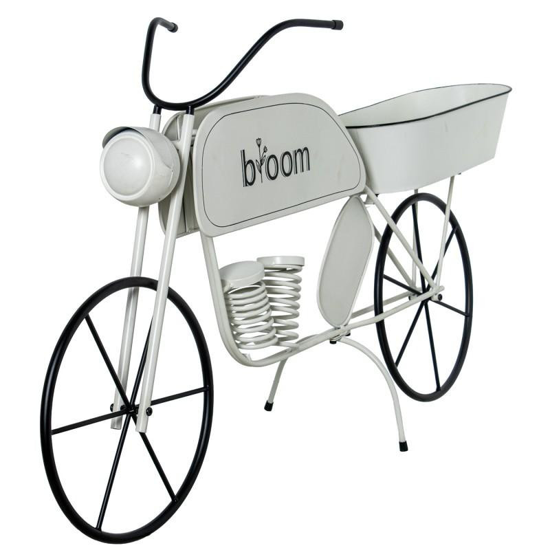 Motocarro jardinera expositor y bandeja de metal en blanco y negro. Medidas: 116x28x58cm